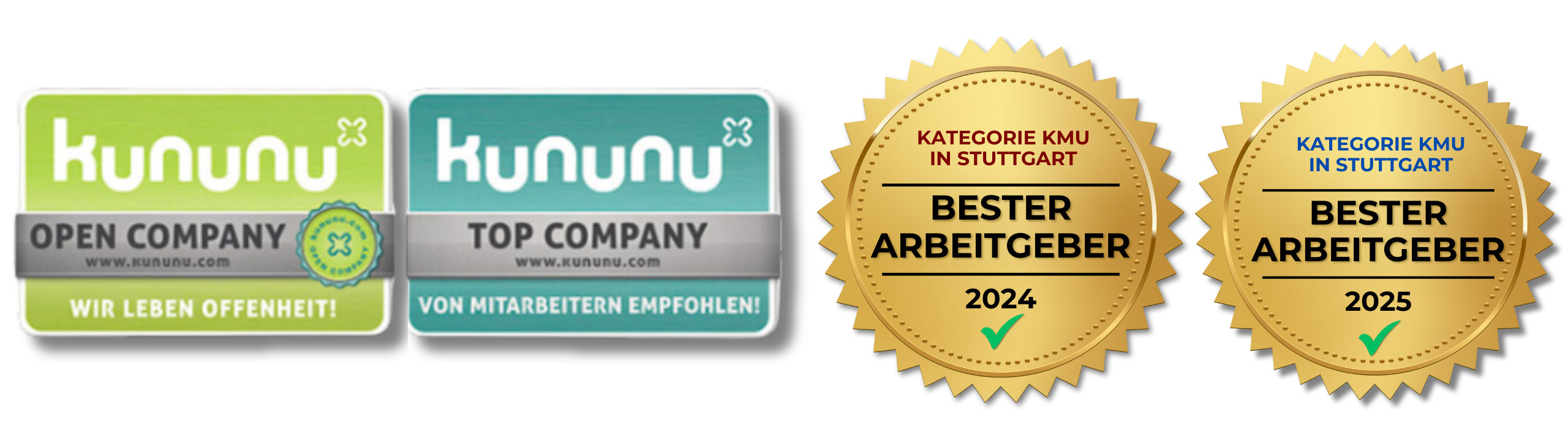 Gemeinsam mit unseren Mitarbeitern arbeiten wir täglich daran, uns weiterzuentwickeln und stetig zu verbessern. Dafür wurden wir bereits mehrfach ausgezeichnet – u. a. als TOP-Company bei kununu mit 100 % Weiterempfehlung.
