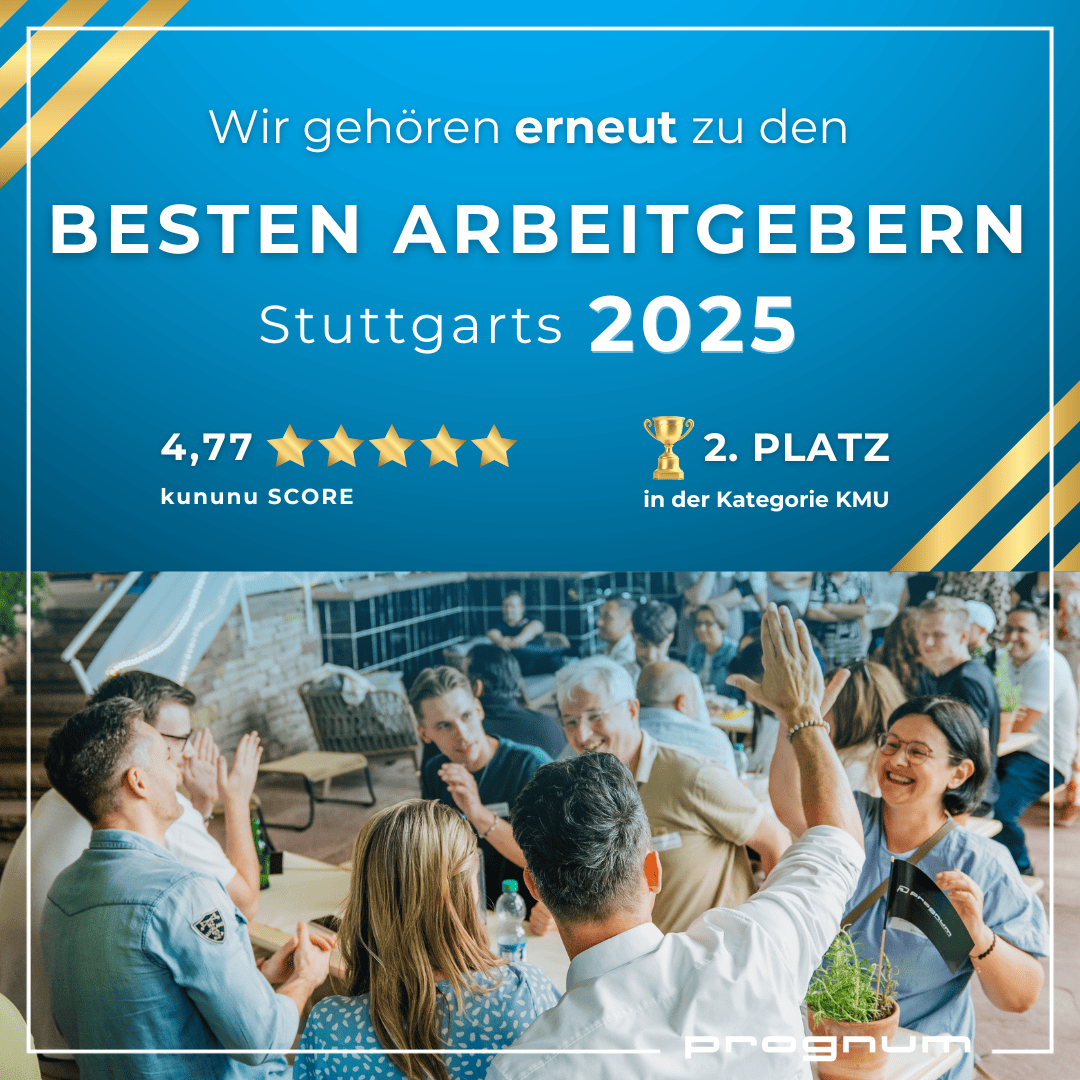 Trotz eines herausfordernden Jahres und schwieriger Marktbedingungen haben wir es auch 2025 geschafft, im Ranking der besten Arbeitgeber Stuttgarts in der Kategorie KMU mit 4,77 Sternen erneut den 2. Platz zu erreichen! 🎉